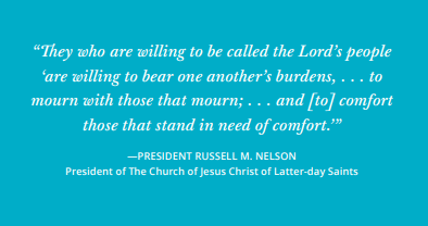 When the sacred hour comes to present our sacrificial gift to the Lord, we do have our own sins and shortcomings to resolve; that’s why we’re there. But we might be more successful in such contrition if we are mindful of the other broken hearts and sorrowing spirits that surround us. Seated not far away are some who may have wept—outwardly or inwardly—through the entire sacramental hymn and the prayers of those priests. Might we silently take note of that and offer our little crust of comfort and our tiny cup of compassion—might we dedicate it to them? or to the weeping, struggling member who is not in the service and, except for some redemptive ministering on our part, won’t be there next week either? or to our brothers and sisters who are not members of the Church at all but are our brothers and sisters? There is no shortage of suffering in this world, inside the Church and out, so look in any direction and you will find someone whose pain seems too heavy to bear and whose heartache seems never to end. One way to “always remember him” would be to join the Great Physician in His never-ending task of lifting the load from those who are burdened and relieving the pain of those who are distraught.
